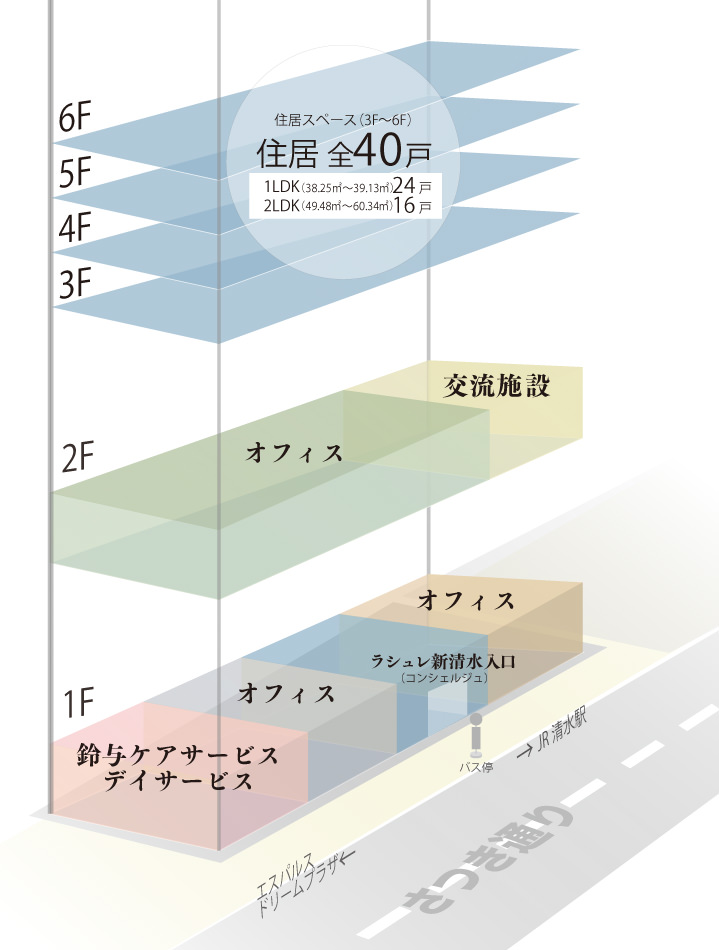 | テナント | 新清水クリニック・デイケア 調剤薬局 介護保険対応デイサービス |